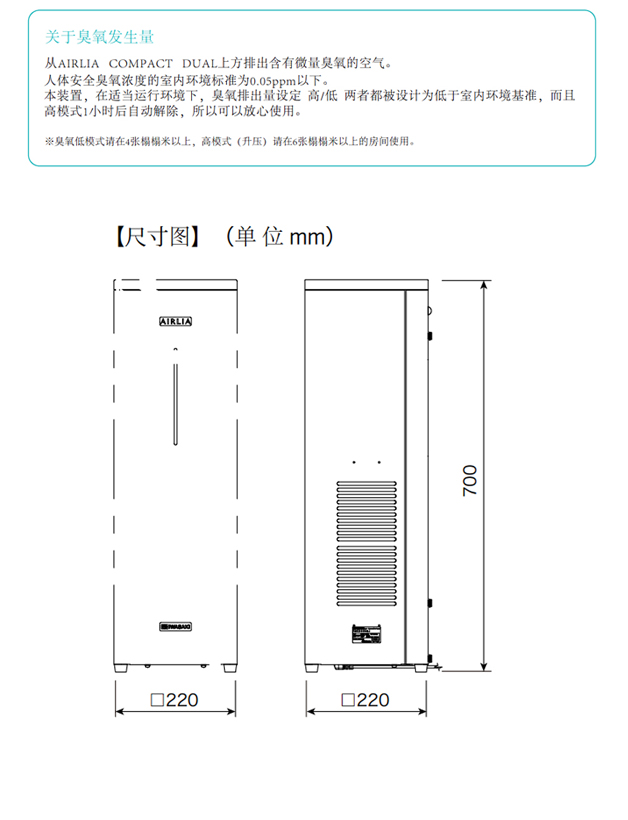 AIRLIA DUAL型號(hào)是對(duì)應(yīng)約66m³空間的紫外線(xiàn)臭氧雙功能機(jī)型,在紫外線(xiàn)殺菌的同時(shí)使用臭氧除臭,臭氧在反應(yīng)后形成氧氣,安全放心,三檔風(fēng)速可供選擇,適合家庭使用。