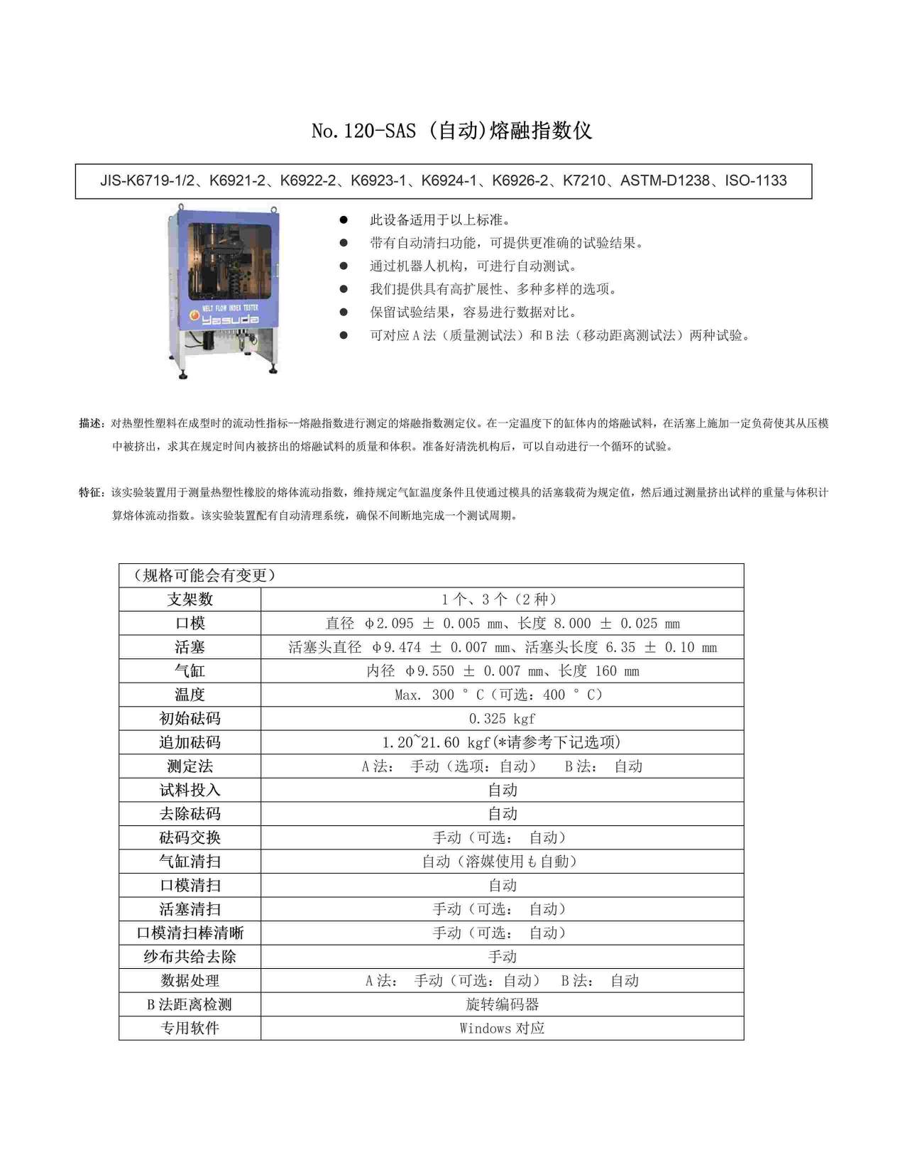 | 當(dāng)前位置:網(wǎng)站首頁(yè)>> 產(chǎn)品中心>> 安田精機(jī)-塑料橡膠試驗(yàn)機(jī)>> 熔融指數(shù)儀/熔體流動(dòng)速率儀